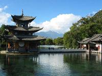 玉泉公园位于丽江城北象山脚下,俗称黑龙潭。泉水清澈,玉龙雪峰和象山倒影其间,景色十分迷人。周围翠柳垂帘、芳草如席,古木葱郁,楼阁亭台掩映在绿树红花之中,被誉为滇西北高原上的一块美玉。