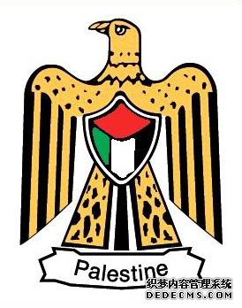 国徽:为一只雄鹰,胸前的盾面为国旗图案。底部用英文写着“巴勒斯坦”。
